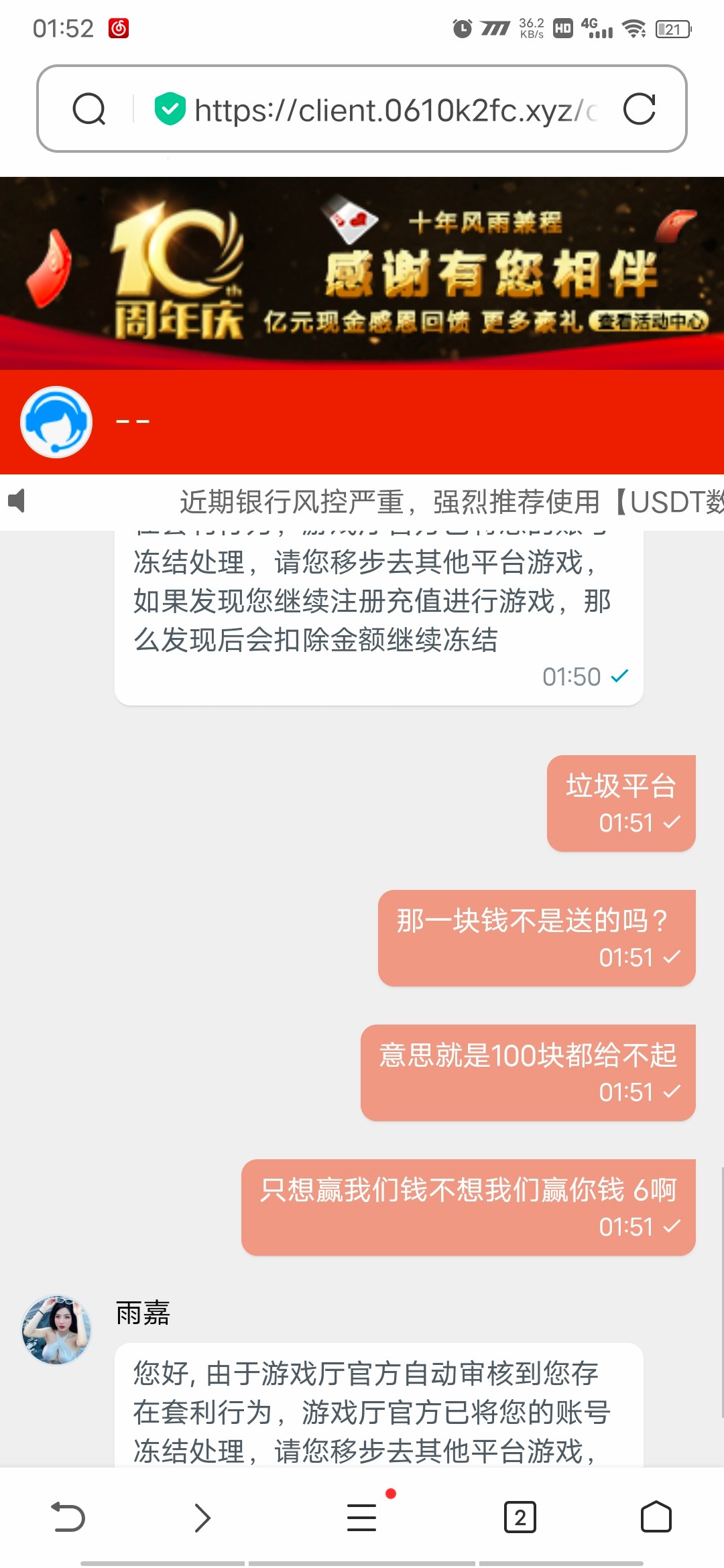 一样一样,VIP餐厅达到100,然后让充100充值了,然后打到500提现让我提交手持什么之类的,操他妈的,提供了再给我黑了,这不需要亏