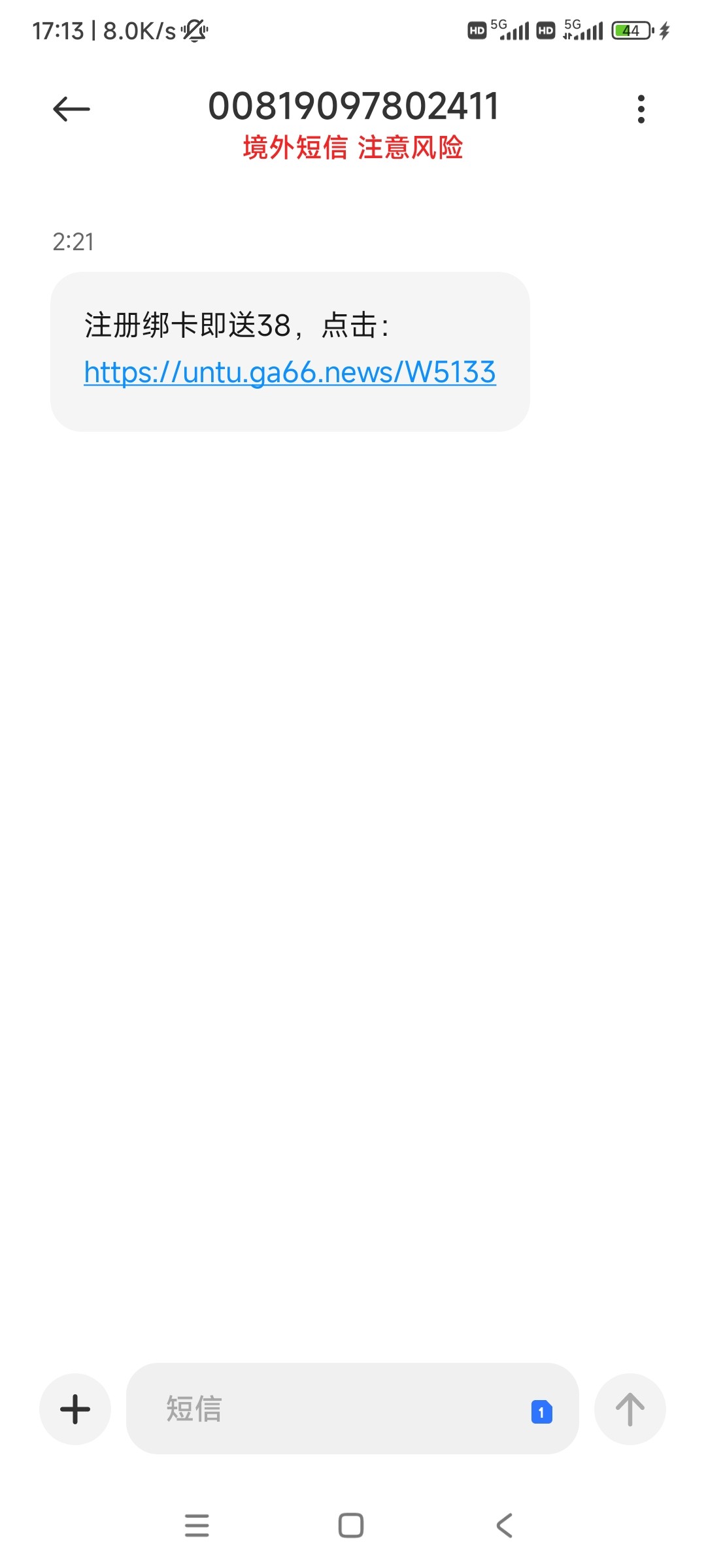 没见过境外短信 多半是没有