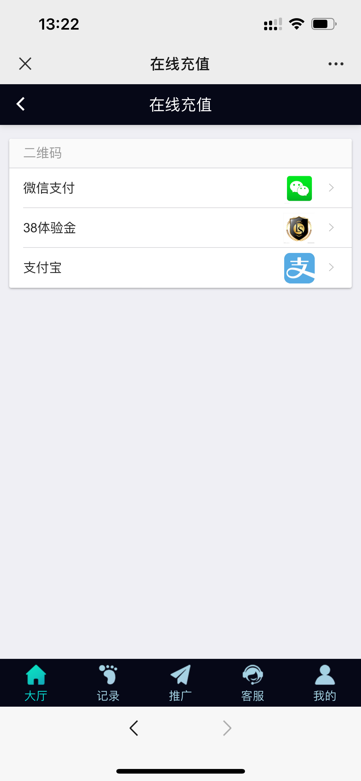 找在线客服加微信截图id 然后充值的地方选体验金通道提交38
