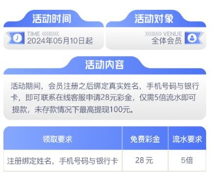 注册绑卡,找客服申请彩金28