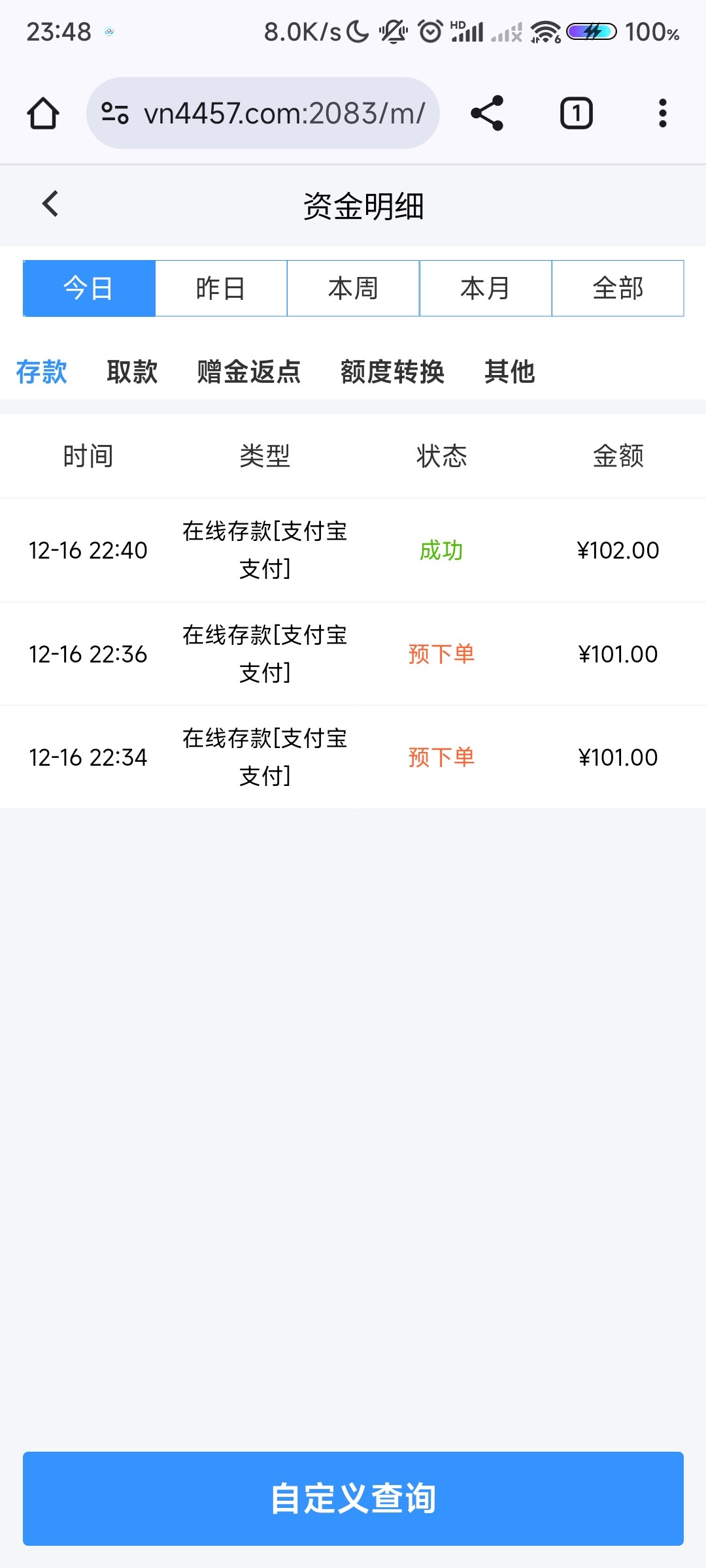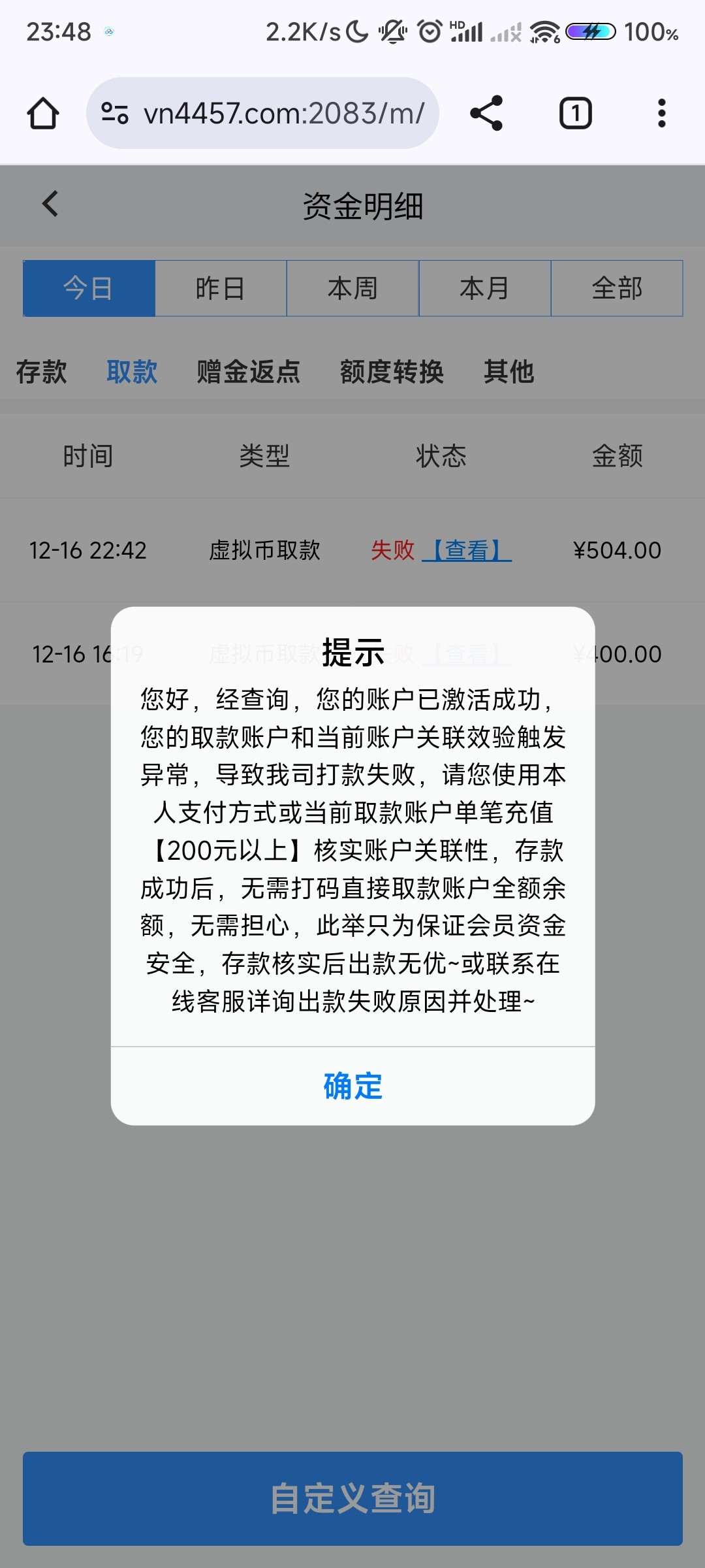 专门黑钱的台子。并且后台一直在控制,查看用户活动记录,如果你点击存款界面但是没有存款成功,过几天他们会打电话重新给你送88或者188,直到你打到提现的时候就告诉你要无限充值了!!记住了,是无限充值也不可能提款出来!!详细套路看图:
