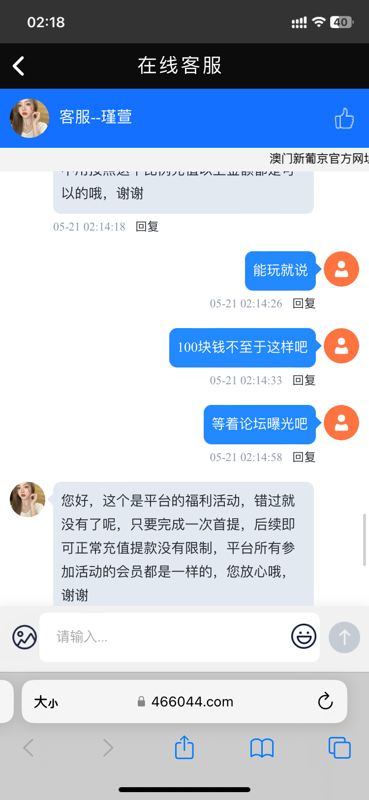 澳门新葡京发短信送64打上200叫充值一半100,后面充值100打上600不给提现.黑台去tm的短信避坑弟兄们!