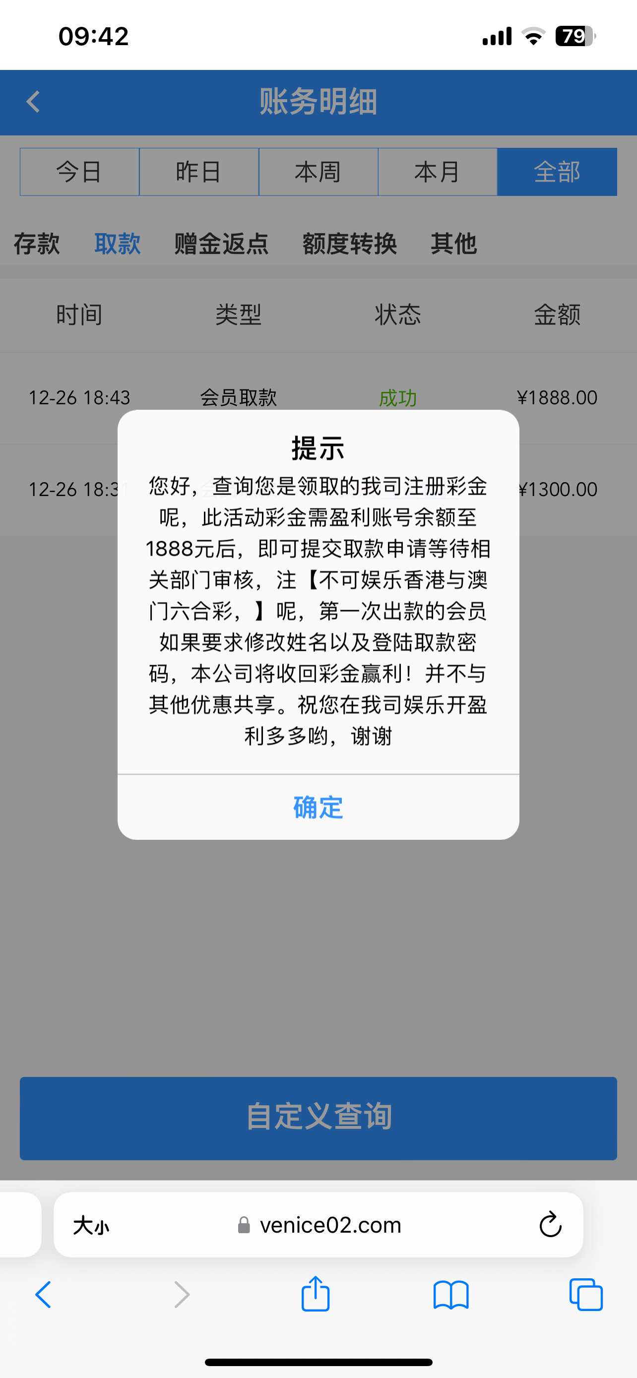 我的136也黑了,以前送过188取款200到了,电话邀请回馈28 每天签到8.8好像是30天,第三天赢到136取款注单异常说不欢迎。