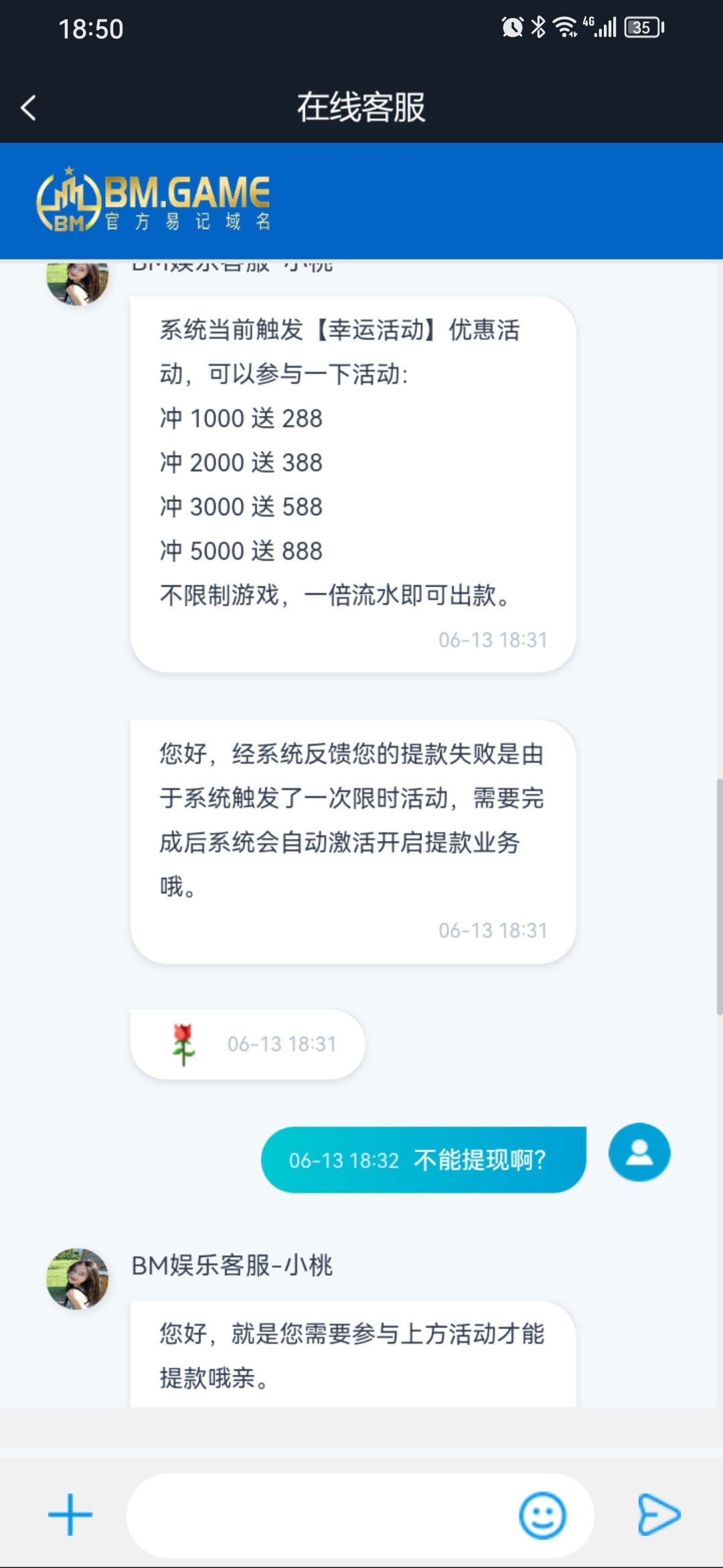 垃圾东西两百都要黑开始充一百提309不给提说要充一百一倍流水打完了就直接啦黑狗东西