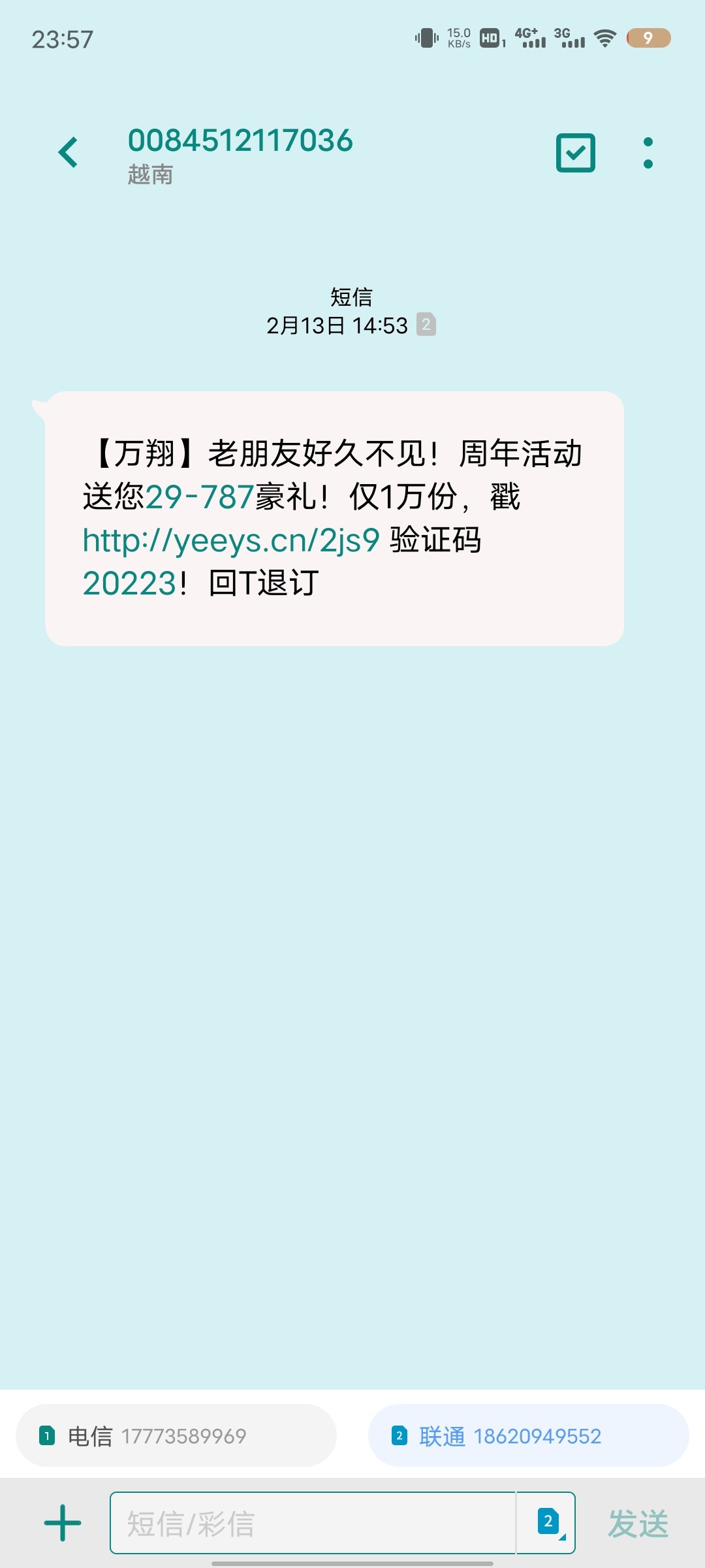 短信内容: