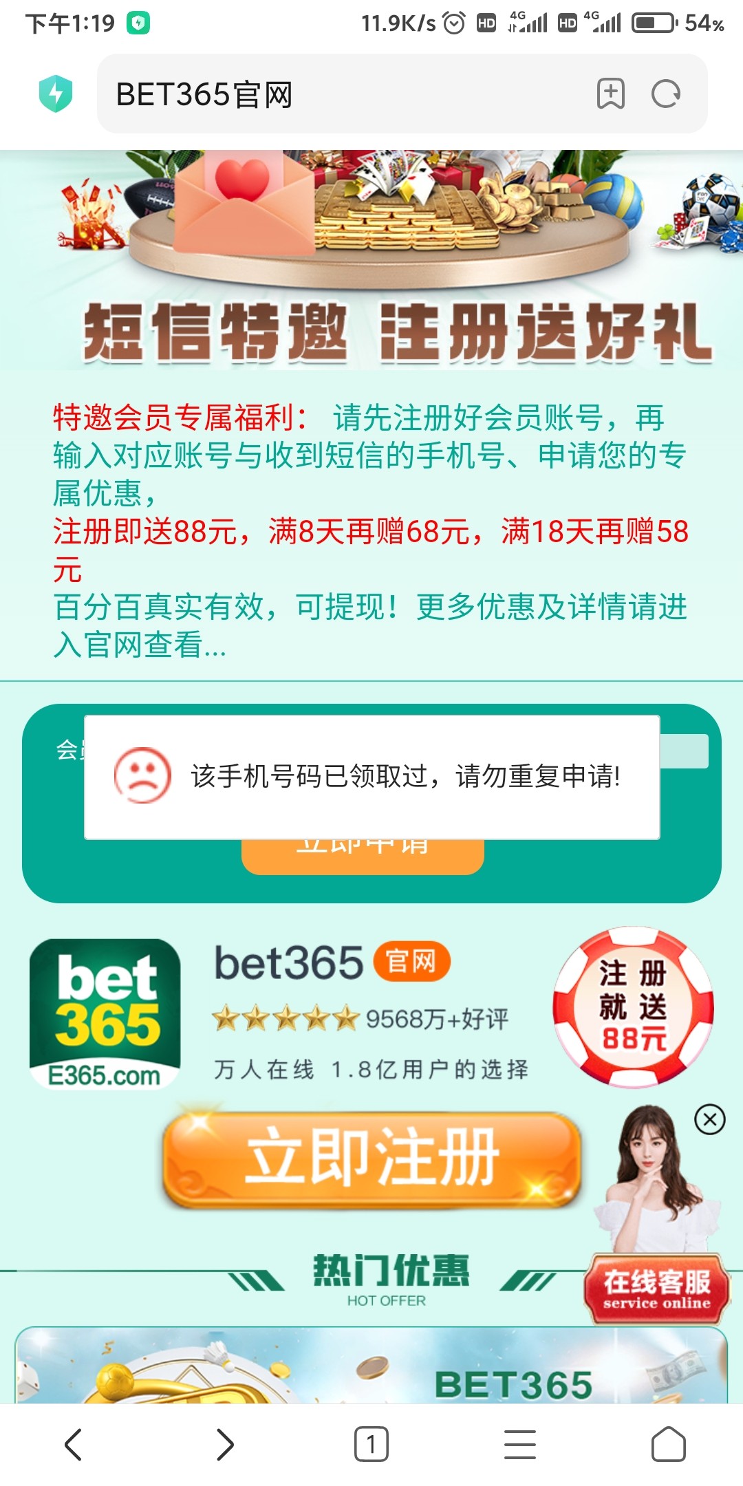 天天给我发短信。两个号申请了又不送。这种狗台子还想指望着别人充钱